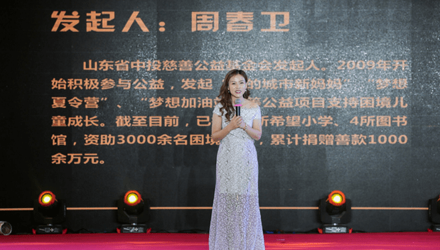 活動現(xiàn)場,山東省17地市電視臺主持人代表拉開了盛典的序幕,被授予“公益?zhèn)鞑ゴ笫埂睒s譽。山東省中投慈善公益基金會發(fā)起人周春衛(wèi)女士致辭感謝了與會嘉賓對慈善公益事業(yè)的支持,并從自身角度向大家講述了“我的城市新媽媽”公益項目的發(fā)起初衷。來自全國各地的“我的城市新媽媽”公益項目7位聯(lián)合發(fā)起人亮相,發(fā)起人之一、山東廣播電視臺著名主持人書勻被聘任為山東省中投慈善公益基金會公益形象大使,黃安、左東川、喬鵬飛等藝人現(xiàn)場演繹公益歌曲,山東省扶貧開發(fā)基金會秘書長王景輝為愛心企業(yè)代表和愛心人士頒發(fā)“愛心企業(yè)單位”、“愛心大使”、“公益大使”榮譽牌。